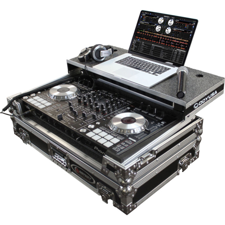 The Odyssey Pioneer DDJ-SX/S1/T1 DJ Controller Glide Style Case featuring patented Glide Style laptop platform design. Specifically made for the long awaited Pioneer DJJ-SX DJ controllers, it also features exclusive, patent pending, high-density bevel foam interior that neatly angles upward raising the controller for an efficient control surface. The stylish V-Cut removable panel allows for easy access to the front controls and headphone/mic jacks. A spacious ventilation pit under the controller is ideal for storing cables and other accessories.