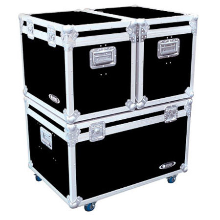 The Odyssey Flight Zone Truck Pack is comprised of three cases that can be stacked for easy transport and provide fast and efficient use of space for easy load-in and load-out of venues. The bottom case has four 4.0" heavy-duty casters and is 32x22.5x21". The two top cases are 21x18x16" each. Internal removable partitions are included in each case for quick storage and arrangement of the stage and lighting gear.