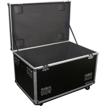 The Odyssey FZUT2W-EMPTY Heavy Duty Utility DJ Case with 3.5" Heavy Duty Casters can hold a ton of gear and keep it all organized to boot! It can hold gear up to 42x27" and up to 23" deep (26" from floor to top lid). The features include 3.5" heavy duty casters, 2 super stop brakes and stacking caster plates.