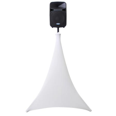 The odyssey Scrim Werks SWLTPSWHT 360 degree tripod slip screen is designed to give your speaker and lighting tripod stand set ups a cleaner and more professional look. Before mounting a speaker or T-bars, just attach a pin or an option O-clamp to the top extension pole to secure the scrim ring and then slip over the SWLTPSWHT. Once everything is set and secure, tighten the top draw string and attach the bottom section to the three bottom legs of your tripod completely covering the bottom tripod leg area. For more elaborate theatrical or banquet set-ups use SWLTPSWHT scrims in conjunction with other Scrim Werks products along with color wash lighting effects. Also available in black (SWTPSBLK) and in packages with a LAC02 O-clamp (SWTPSBLK-C / SWTPSWHT-C) for 2" or 1.5" poles included.