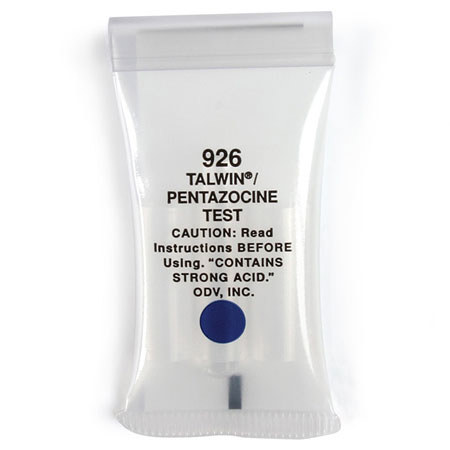 The ODV NarcoPouch Pentazocine Reagent (Talwin, 10 Pack) features presumptive test designed to identify the presence of Pentazocine. Pentazocine is the chemical name for Talwin. Upon breakage of the 2nd ampoule, a bright Blue will appear instantly in the presence of Pentazocine.