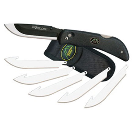 The Outdoor Edge Razor-Lite with 6 Blades is the solution for dull knives. Sharpen the blade or simply push the lock button to remove and insert a shaving-sharp new one. Rubberized handles ensure a secure, non-slip grip and are available in black and blaze-orange. Each knife comes complete with 6 replacement blades and nylon sheath.