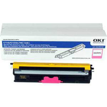 OKI Data 44250714 magenta toner cartridge is compatible with MC160 MFP/C110/C130n Printers. It yields approximately 2,500 pages at 5% coverage.