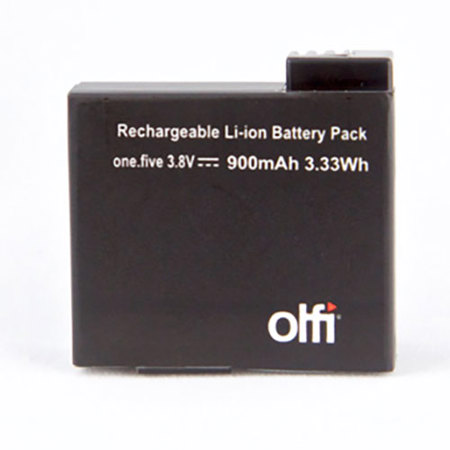 Spare Olfi one.five battery to keep you shooting longer. Pick up a spare battery for your Olfi one.five and keep your camera rolling for longer. The 900mAh battery will provide up to 1 hour 30 mins of recording time, so there's no excuses to miss the action.
