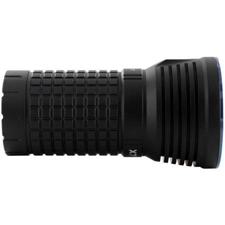 Welcome to the X7 Marauder. Featuring 9000 lumens in a "soda can" sized light to provide the power of the sun in the palm of your hand. Powered by four Olight 8 Amp 18650 batteries, the light will reach the peak 9000 lumen setting. The X7 Marauder carries three four core light-emitting XHP70 LED's which are currently one of the highest performing light sources on the planet. The light features a custom designed orange peel reflector to create the perfect beam pattern for logical and realistic use. People ask, why would someone need 9000 lumens? Well the X7 offers 6 modes at various brightness levels going all the way down to 3 lumens which mimic a small keychain flashlight.