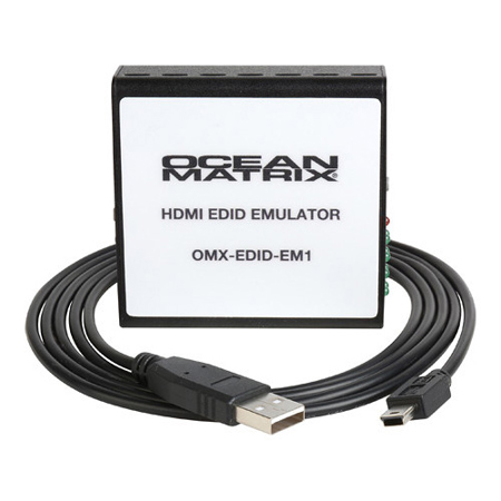 The Ocean Matrix OMX-EDID-EM1 emulates EDID information to correct compatibility issues between a video source and a monitor. Designed for AV installation and equipment testing, the unit has an integrated learning function that allows EDID management through read, write, emulator and bypass modes.