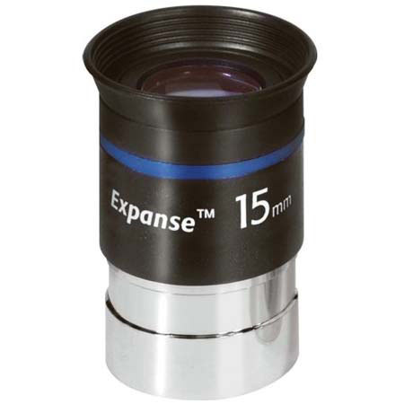 The Orion 15mm Expanse Eyepiece features 66° apparent field of view. Imagine taking in objects like the Andromeda Galaxy, the Double Cluster, or the star clouds in Sagittarius in one sweep. Expanse oculars have big eye lenses and great eye relief (13mm to 17mm). Eyeglass wearers can view the entire field without removing their glasses.