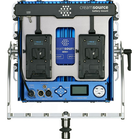 The Dual V-Lock Battery Mounting Plate for Mini LED Light is made of machined aluminum. It holds 2 V-Mount batteries for twice the run time with half the current draw than a single cell battery. You can expect around 1-hour run time from a Mini with the two optional 150Wh cells.