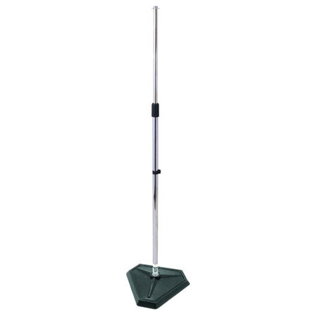 The On-Stage MS7625C Hex-Base Quarter-Turn Threadless Mic Stand (Chrome) features a revolutionary design. The stand locks and releases from the hexagon shape base with a simple, twist and quarter turn. This puts an end to stripped threads and makes setup quick and easy. The 8 lb base features a hexagon shape for added foot room. The stand features an adjustable height between 33 to 61".