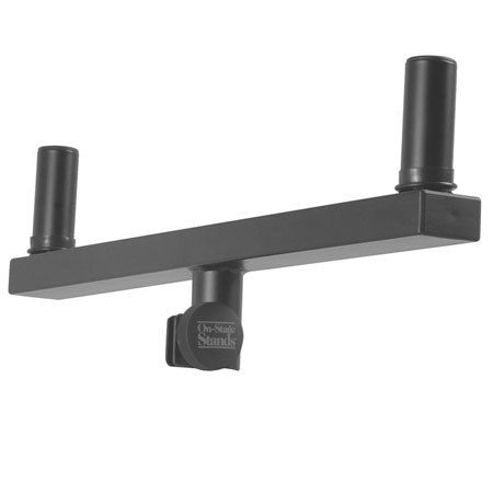 The On-Stage Dual Mount Speaker Bracket is a speaker bracket that will hold up to (2) speaker cabinets. It is constructed of steel and offers 1-3/8" inserts that are compatible with most speaker-cabinet fittings. The friction-locking adjustment piece on the bottom of the bracket will fit most standard speaker stand shafts. It features a black powder-coat finish.