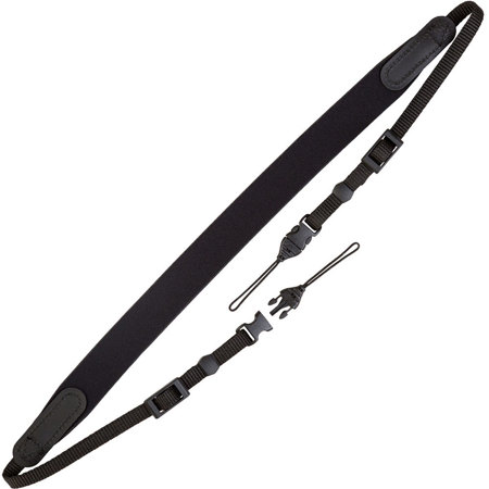 The BIN/OP STRAP - QD (Quick Disconnects) uses small cord in the loop attachments which is ideal for cameras/binoculars with tight connection areas. The quick disconnects provide added versatility in a compact design. The main strap can be easily removed if desired. It is adjustable from 28" - 36" (71,1 cm to 91,4 cm).