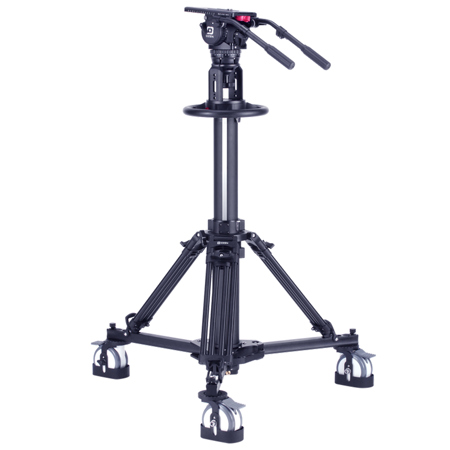 PED50 Light Studio Pedestal with 15" on-air stroke - for use with industry standard flat base, and with an adapter, for use with 150mm, or 100mm fluid heads. Includes DOLLY HD heavy-duty studio dolly with precision asimuth-tracking wheels & cable guards.