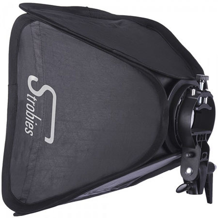 Get the most from your speedlight with the Interfit Photographic Strobies S-Type Speedlight Bracket and Softbox Kit. Ideal for the mobile photographer, this kit offers a quick and portable solution to studio lighting on location, opening up a seemingly endless array of lighting options. The Strobies S-Type Speedlight Bracket is a lightweight, aluminum reinforced, bracket that clamps onto the head of your flash unit. This leaves the body of your flash free to move around, allowing you to place your slave and/or TTL sensors exactly where you need them. The jaws of the clamp open up to 80mm wide and 55mm tall, making it compatible with nearly all manufacturers' speedlights. The concave design of the top clamp also allows this unit to be used with the Pro-Flash One Eighty, Pro-Flash 360 and other bare-bulb flash units.