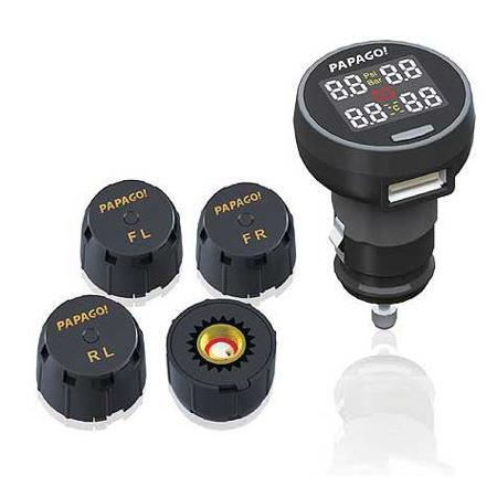 Designed with driver's safety in mind, Papago! introduces the GoSafe TPMS 100, a tire pressure monitoring system created to minimize chances of accidents, improve fuel efficiency, lengthen the life of tires and minimize suspension wear on cars that do not already have a TPMS. The tire sensors inspect the pressure and temperature of each tire and send the information to a receiver, a device that goes inserted into the car's lighter. When an abnormal change in pressure or temperature occurs, the receiver beeps and specifies which tire is impaired, alerting the driver to pull over. With the GoSafe TPMS 100, all you'll have to do is focus on the road.