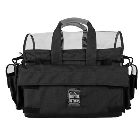 Main outside pocket can be removed and attached to either side. Special ports were created so cables can berouted into all exterior pockets for snag free wiring versatility. Equipped withleather carry handles and HB-40a shoulder strap.