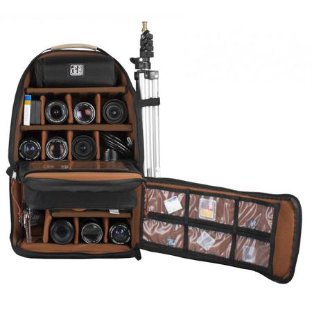The main compartment interior lid has organizing pockets for memory cards and an iPad (or similar-sized tablet). The tablet can be used while in the pocket for convenient quick access. The BK-5DMARKIV camera backpack comes with multiple padded-dividers for customizing your case interior to your specific equipment setup. The multi-function side pocket is ideal for organization and transport of a wide range of accessories including tripods and stands, media, chargers, lenses, etc. This case also includes one (1) 7" Porta Brace Lens Cup and two (2) 4" Porta Brace Lens Cups for extra protection and enhance field-use of extra lenses.