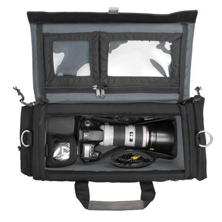 The PortaBrace DCO-1R Digital Camera Organizer has a rigid-frame that provides an extra level of protection. The DC Organizer is the ideal case for field photography. New DC Organizer Combo includes DC organizer, 2 CS-B9 soft padded stuff packs, custom cradle with tie-down strap (custom fit for your camera) and suede leather shoulder strap.