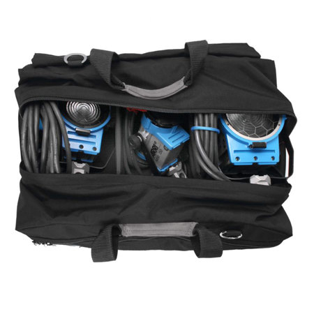 The Light Run Bag is a durable, lightweight 1000-denier Cordura case designed to carry lighting heads and compact light stands or other lighting or camera accessories. The interior main compartment and the large front pocket are padded for extra protection. There are exterior pockets that will hold AC cords, cables, gel rolls and reflectors. A padded interior divider kit is included that can be positioned to create three separate compartments or a single large compartment. There are suede leather handles for carrying and a comfortable suede leather shoulder strap is included for carrying over the shoulder.