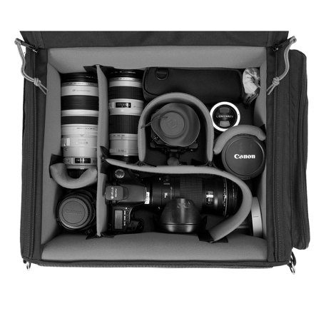 The Porta Brace Packer PKB-2650DSLR (Black) is designed to protect and organize DSLR kits and to fit inside a Porta Brace PB-2650 series Vault Hard Case. The case is made from 1000 denier Cordura nylon with hollow-core plastic rigid sides and a fully padded interior. The packer has a divider kit that contains; a 44 x 7.0" removable, bendable, padded "Snake" divider for wrapping around and protecting cameras and lenses, two 4.0 x 7.0" foam-padded dividers, a 9.0 x 7.0" foam-padded divider, two 6.0 x 6.0" padded accessory pouches, a 9.0 x 9.0" padded stuff sack, a 4.0" and 7.0" positional padded lens cup with clear vinyl window and zipper lid, a camera tie-down cinch and a foam padded camera support block. It has a suitcase-style opening for fast deployment of equipment and easy packing when the shoot's complete. The packet includes a removable, adjustable shoulder strap with genuine suede leather pad.