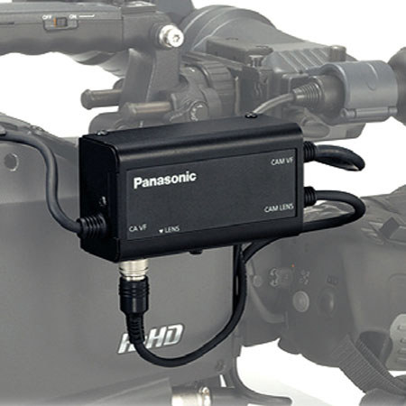 The Panasonic AG-YA500GPJ Viewfinder Interface Box is designed to work with professional Panasonic camcorders when tally and return video need to be displayed in the ENG viewfinder, specifically in 300Studio and P2Studio camcorder systems. The unit mounts directly on the camera and is compatible with AJ-HVF21G, AJ-VF20WBP, AJ-VF15BP and AJ-CVF100G Panasonic viewfinders.