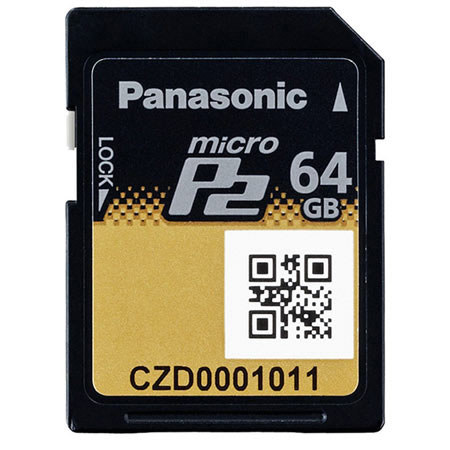 The world's first UHS-II complaint memory card, the Panasonic AJ-P2M064AG is a 64GB microP2 card that will guarantee data writing up to the class200 mode of AVC-ULTRA, the company's newest compression system. With an SD card form factor, the MicroP2 cards will ensure high-speed transfer, high reliability and the writing assurance of all P2 frame rates, formats and codecs. Furthering the versatility of the microP2 card adapter and microP2 card slots, their design allows Class 10 SDHC/SDXC cards (at bit rates only up to 50Mbps) to be used in P2 products.