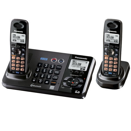 The Panasonic Kx-TG9382T 2-Line DECT 6.0 Expandable Digital Cordless Answering System with 2 Handsets is perfect for home or business. Two-line operation means you can conference in two outside lines to have a three-way conversation or place your current call on hold to make another call. Engineered to work in 1.9 GHz frequency, DECT 6.0 phones won't conflict with common wireless devices such as 2.4 GHz routers, wireless keyboards and mousse, microwave ovens and other household items. And because its digital, you'll enjoy long range and clear sound while deterring eavesdropping. Transfer up to 600 names and numbers from your cell phone to the built-in directory via Bluetooth. Perfect for business people who add to their cell phone directory and need a simple way to transfer the contacts to their office phone directory. Keep the conversation going and your hands free. Perfect for those times when you're talking, but need to walk around your office or home, open drawers, flip through files or write. Enjoy unprecedented freedom that you can't get from a speakerphone.