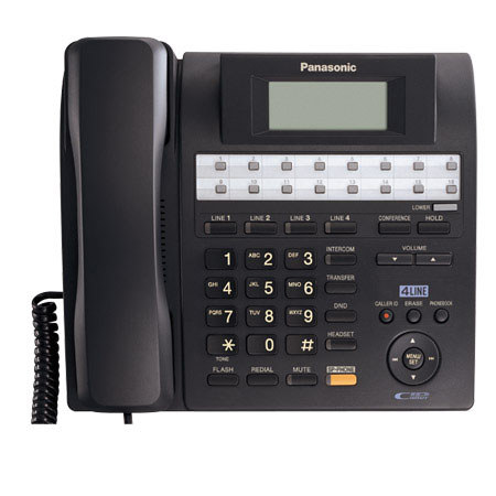 The Panasonic 4-Line Corded Integrated Phone System is equipped with several distinguishing convenience features. The integrated 4-line telephone system lets you to store up to 200 names and numbers in the phonebook. Caller ID and call waiting help you manage incoming calls. Make 3-way conference calls or use the Built-In Speakerphone to operate hands free. You can even mount the Panasonic corded phone system to your wall to save valuable desk space, or plug in an optional headset to further free up your work environment.
