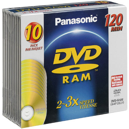 The Panasonic LMAF120LU5 DVD-RAM 4.7GB single-sided DVD-RAM discs are rewritable discs that can record up to six hours of video (depending on the format). These are non-cartridge style DVD-RAM discs that can be used with all DVD recorders compatible with the DVD-RAM format. The discs are packed in slim jewel cases.