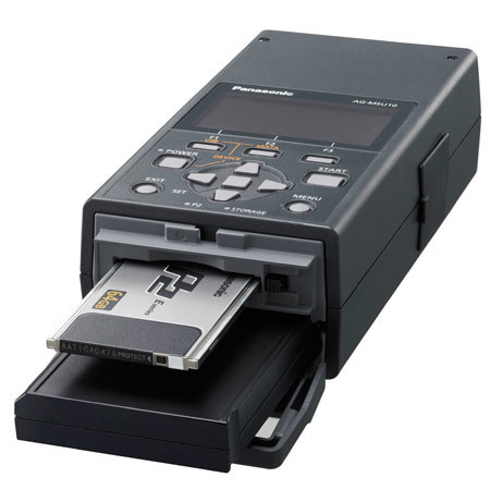 The Panasonic AG-MSU10 P2 Media Storage Unit with 256 GB SSD is a mobile storage device designed for backing up and transferring video footage from P2 memory cards to an internal solid state drive, external hard drive, or to a Mac or PC. With its rugged design, built-in P2 card slot, AC/DC operation and USB 2.0 and eSATA interfaces, the AG-MSU10 offers a range of options to insure your P2 video remains safe while in the field. A removable interface tray comes with a 2.5" 256 GB solid state drive included. The interface unit can be used internally or, using its own eSATA and USB connectors, as removable media hooked directly to a PC or Mac editing system.