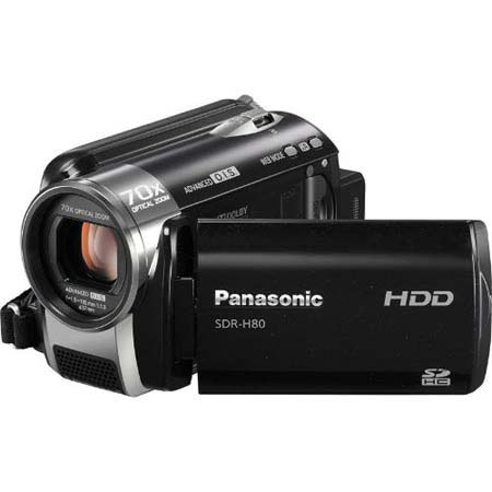 The Panasonic SDR-H80A 60GB HDD/SD Card Standard Definition Camcorder features optical 70x Ultra Zoom and Advanced O.I.S. (Optical Image Stabilization). This 70x zoom lens has the power you need to take dramatic close-ups or get remarkable shots of even distant subjects. But with long-distance zoom shots, even a tiny bit of hand shake has a huge effect on picture quality. That's where optical image stabilization comes in.