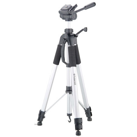 The Polaroid PLTRI72S 72" Tripod W/3-Way Panhead extends up to 72" (1.82 m), supports up to 20 lbs (9.9 kg) and weighs just 3.83 lbs (1.74 kg). It features a 3-way panhead and quick release plate (a second quick release plate is included). This 3-section tripod is designed to support digital still cameras, lenses, telescopes and camcorders. It also has a locking center-column brace and flip locks for fast and easy height adjustment, as well as a geared elevator center column, 2 built-in bubble levels (on the base and on the panhead) and rubber feet.
