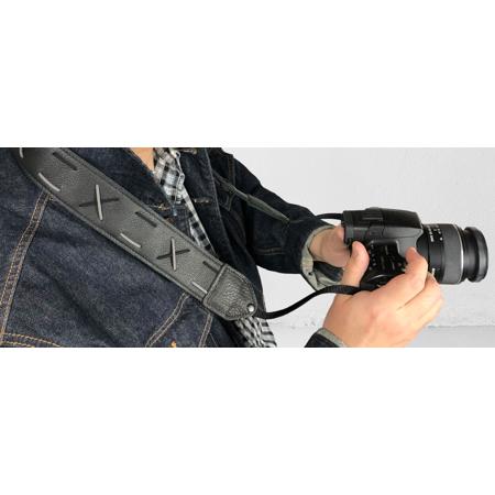 CSL-10 Black Garment with Suede Lace Weave. Take a load off your shoulders and neck with the 2" wide, adjustable leather camera strap that provides weight distribution for your comfort. Perri's Leather Camera Strap provides superior comfort with all types of cameras. Adjustable length from 45" to 55" long. Fully adjustable length guarantees a proper fit. Made in Canada.