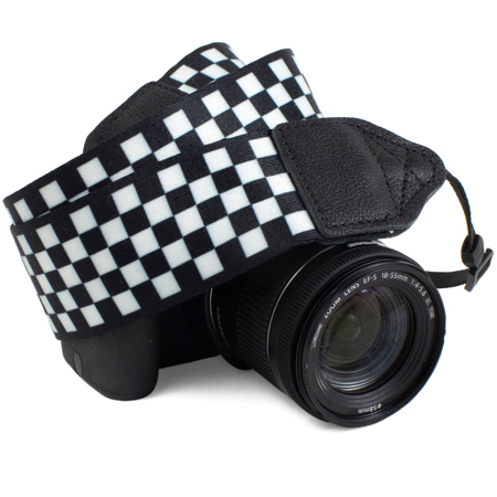The strap features a heat-transfer printing process, resulting in a slight sheen and vibrant colors that enhance its unique black and white checker pattern. This stylish design sets it apart from conventional camera straps, making it a versatile choice for both professional photographers and hobbyists.