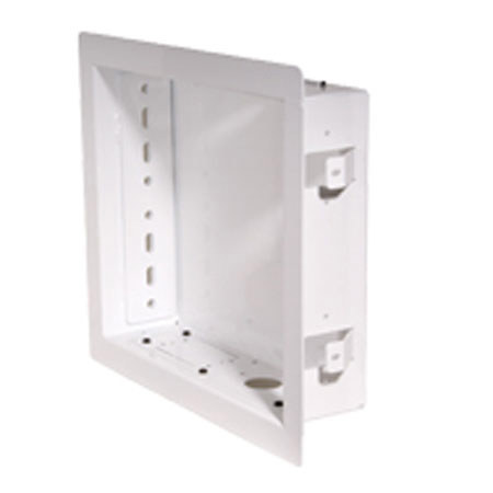 Designed to accommodate small and medium pivot and articulating mounts, the Peerless IB40 In-Wall Box (White) allows the display to be completely flush with the wall surface by recessing the mount and power cables into the wall. This In-Wall Box incorporated removable outlet receptacles and cable access plates inside the recessed area, making power and A/V connections a breeze. Enhancing ease of installation, flexible stud locating tabs adjust 1/4-inch to accommodate stud placement. Featuring various height adjustment points for the mount ensures that this In-Wall Box delivers desired display positioning with ease.