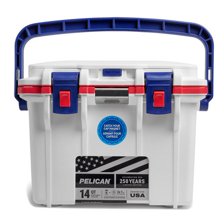 For those who move fast, work hard, and pack only what matters, the America 250 Personal Cooler Series delivers Pelican performance into a smaller, highly portable form. Engineered in the USA to honor 250 years of American grit, each cooler features rugged construction, high-efficiency insulation, and a secure latched lid in a compact, limited-edition colorway. Built with the same tough DNA as our larger Elite Coolers, our Personal Coolers are built for job sites, range days, road trips, and everyday missions to keep your essentials cold, protected, and ready wherever the day takes you.