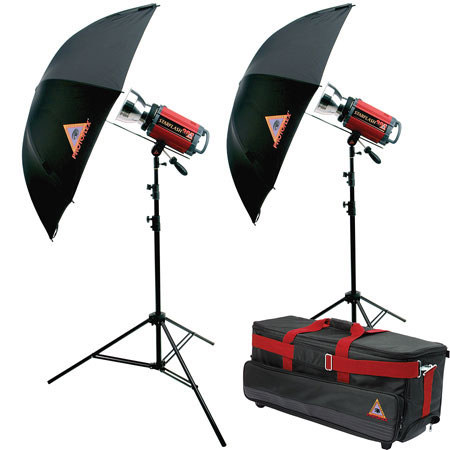 Along with two Starflash 300 strobes, this kit also includes 2-6" Reflectors, 2-45" Silver Umbrellas, plus two 8' LiteStands (# LS-2211), and one TP-SKSC Small Case