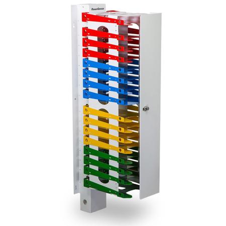 Store and charge more devices in less space with the PowerGistics 16-shelf wall mounted towers. This tower will accommodate all 14.8" devices in the classroom, common areas, library or media center. Device power bricks and cords are neatly secured and protected in the back spine while the steel door secures the devices with a keyed locking system. PowerGistics Towers can easily be mounted to any wall making use of vertical space in the classroom while devices safely lay flat in their natural position, protecting them from spine and cord damage.