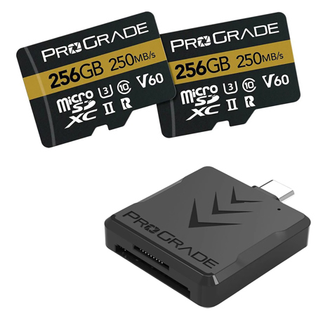 1x SDXC UHS-II and 1x microSDXC cards