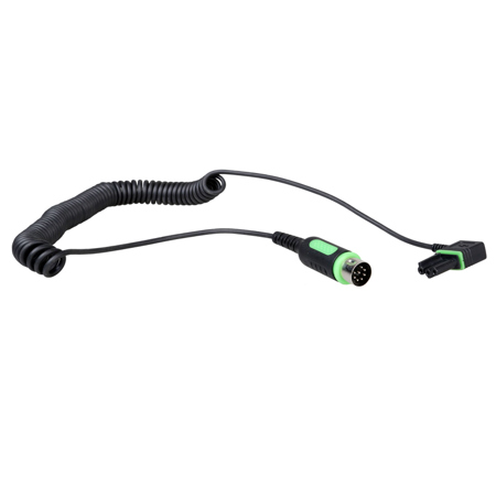 The Phottix Coiled Cable powers a Nikon hot shoe flash from the Indra battery pack or AC adapter. The dual power ports of the battery pack can power two hot shoe flashes simultaneously.