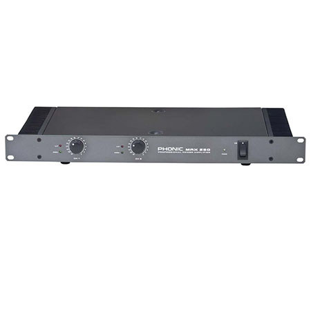 The Phonic MAX 250 160W Power Amplifier provides 80 Watts of power per channel at 4 ohms in a single rack space - ideal for smaller venues and for monitoring purposes. The MAX 250 features ground switches and the option to choose between stereo or parallel operating modes. Input to the MAX 250 amp is achieved via an XLR and a phone jack and output can be achieved through binding posts, making this amplifier ideal for real world application.