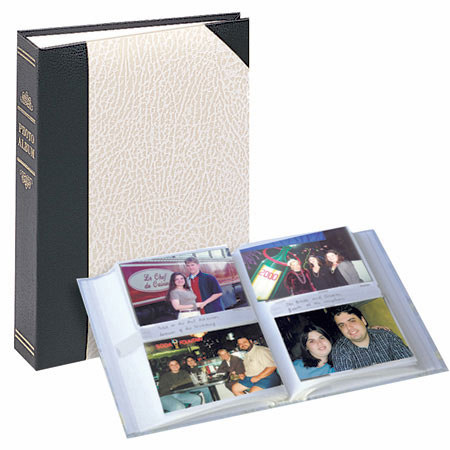 Pages have a removable memo writing strip with index tab. 4x6 pockets are optically clear with a shaded paper background. This album is book bound holding 204 prints. Available in 6 gold accented dual-color covers.