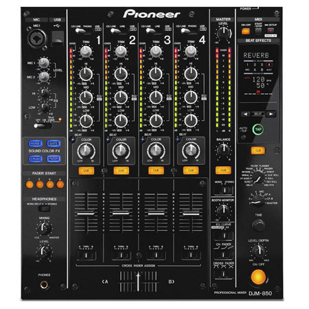 The Pioneer DJM-850 Four Channel Professional DJ Mixer (Black) has a feature set that is sure to measure up in any nightclub. The DJM-850 features 8 analog inputs, 4 outputs and a high quality 24-bit/96kHz USB soundcard that supports up to 4 stereo channels on input and output. The mixer also offers compatibility with the Scratch Control Digital Vinyl System in Native Instrument's TRAKTOR SCRATCH PRO 2 / DUO 2 software.