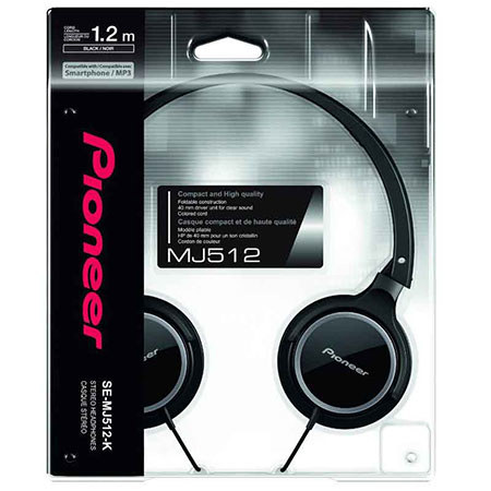 Enjoy great audio quality while looking good with this Pioneer Electronics SE-MJ512 Fully Enclosed Dynamic Over-Ear Stereo Headphones. With a fashionable flat black finish the SE-MJ502-K headphones will mesh with any style and fit perfectly anywhere. Combine the soft leather ear and silicon head cushion, this headphones can be worn all day without suffering any discomfort. Large, soft earpads and a slim-type headband ensure a comfortable and light fit. It folds into a compact configuration for easy storage and carrying.