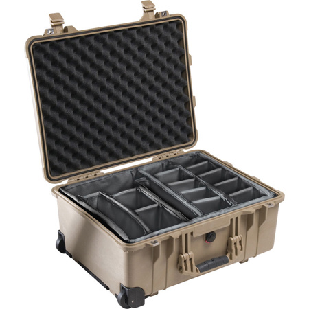 Pelican 1560 Watertight Hard Case with Moveable Divider Interior & Wheels - Desert Tan