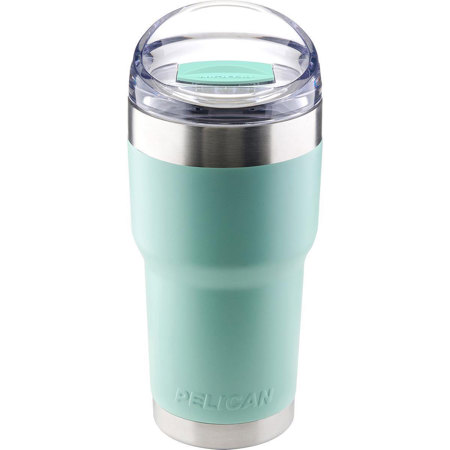 The Seafoam Pelican 22 oz Traveler Tumbler withstands extreme cold and has heat retention as well.