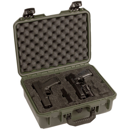 This Pelican gun case is constructed from rugged resin and is designed to securely store and transport two pistols. A custom-cut foam insert paired with a convoluted lid liner cushions your firearms and prevents shifting during travel. An O-ring seal helps protect the contents from water and dust, while the Vortex pressure-relief valve equalizes internal pressure to ensure easy opening after air pressure changes.