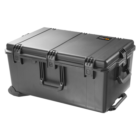 This case features an iM2975 Peli Storm Case with custom foam cutout for 8 laptop computers and accessories. The exterior dimensions of the case are 31.3" x 20.4" x15.5" (L x W x H). Peli Storm Case product made in the USA.