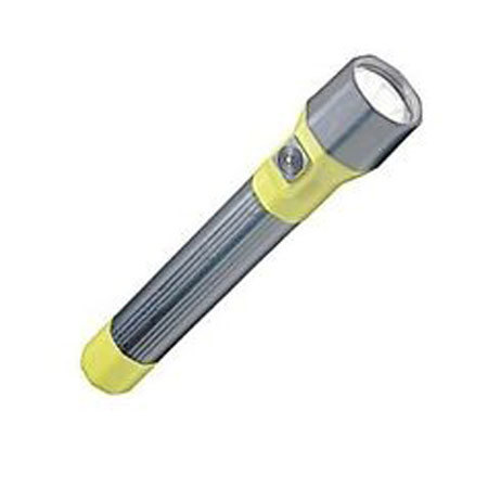 The Pelican M10 Flashlight uses a high-pressure Xenon fired lamp module that produces a powerful, bright, high intensity light. Unlike other flashlights that project a broad yellow beam, the M10 produces a tight white pre-focused beam. It comes with a polarity guard tray that makes operating the flashlight impossible if cells are inverted and prevents dangerous outgassing. The light weight Xenoy body with sure-grip sheath resists chemicals and prevents slippage. The push button switch operates easily, even when wearing thick gloves. The M10 8040 is built tough to withstand the hard knocks that come in the plant, around the beat or on patrol. Powered by 4 C alkaline cells.