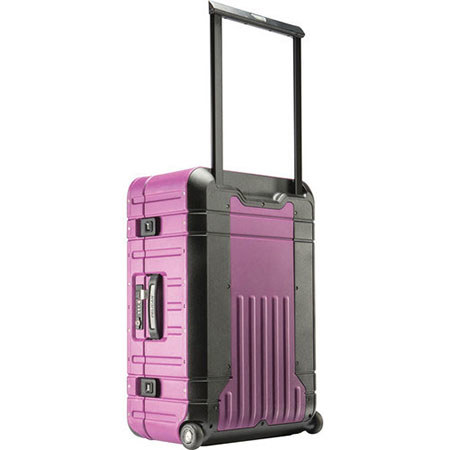 The Pelican EL27 27" Elite Progear purple and Black Weekender Luggage with Enhanced Travel System features lightweight design and it has recessed press and pull latches. Double wall polypropylene with polycarbonate trim can withstand extreme loads up to 1500 lbs. It meets airline checked baggage regulations (less than 62").