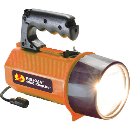 The dual direction switch is easy to operate, even with thick gloves. And there's a locking slide feature to prevent accidental activation. The pistol grip/lantern handle quickly converts to multiple positions for flexibility. The 4000 also comes with a shock absorbing internal battery module that protects both the cells and the lamp from hard knocks. Powered by 8 D alkaline cells.